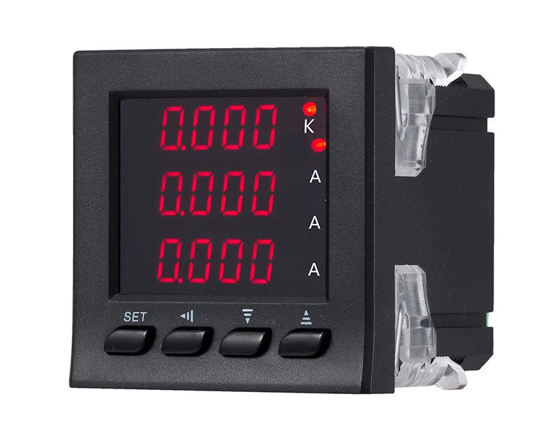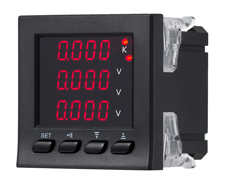 三相数显电压表可同时进行实时测量,并以数字直读方式显示,用一只本仪表即可完成三只普通电压表才能完成的A相电压、B相电压、C相电压或AB相线电压、BC相线电压、CA相线电压的测量任务或三只普通电流表才能完成的A相电流、B相电流、C相电流的测量任务。